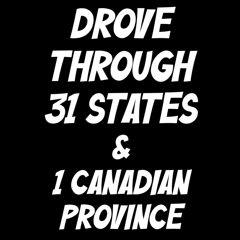 So, I pulled up an image of a map of the lower 48 states and retraced my route filling in each state outline that I’d driven through. When I was done, I had filled in 31 states. Wait a minute, when I did the Power Point presentation to put on Instagram the other day, one slide read: DROVE THROUGH 31 STATES & 1 CANADIAN PROVINCE? Okay, I got that one right.