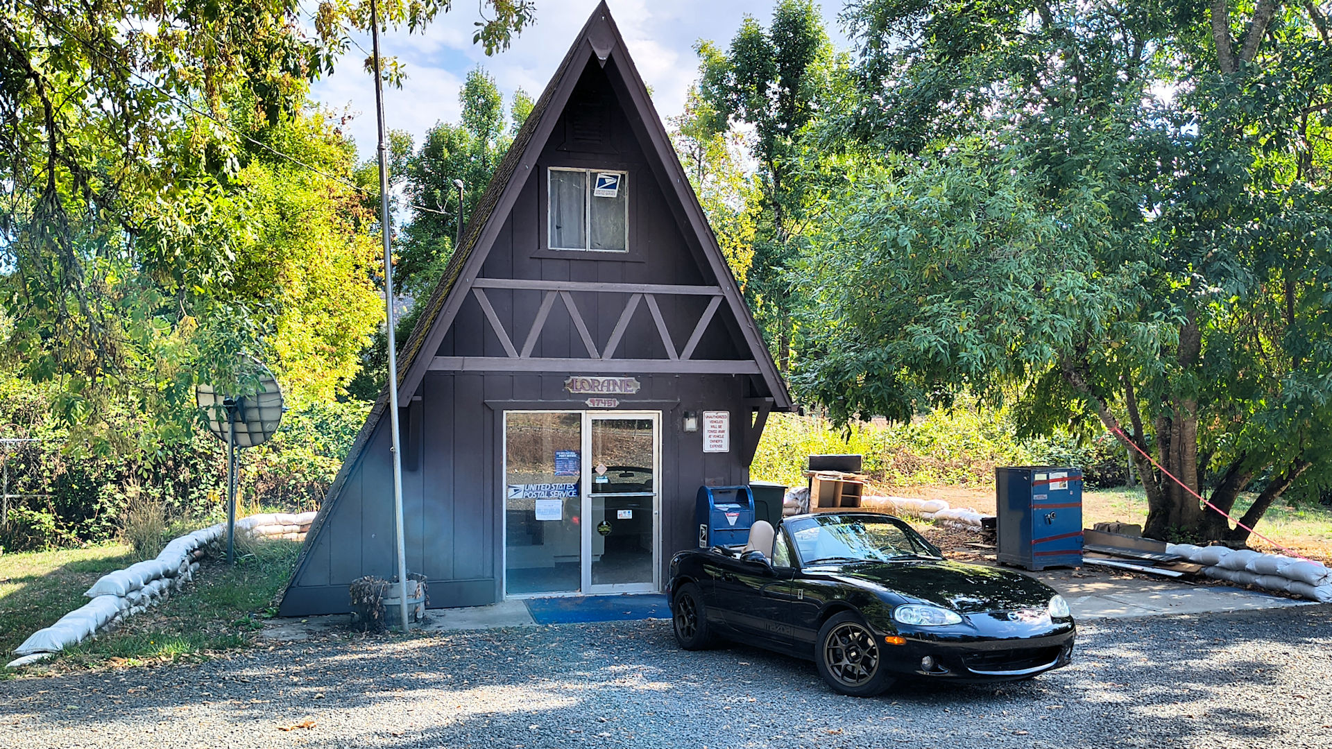 Lorane - A very cool small A-frame. I wonder if the postmaster lives upstairs. (920/25)